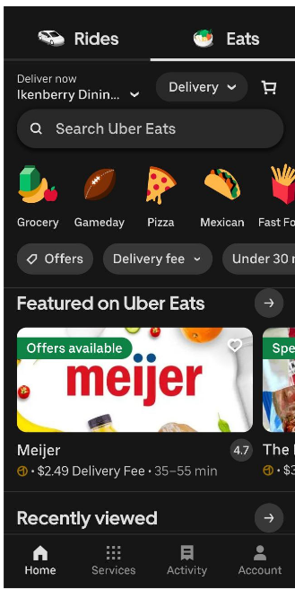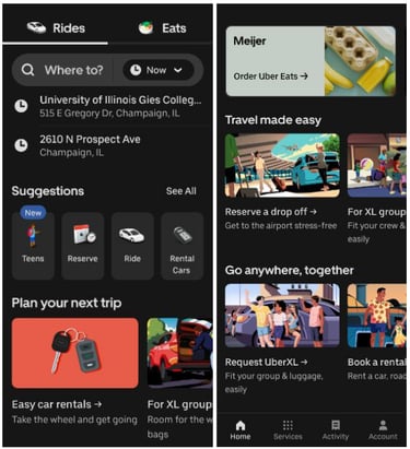 Seamless Experience Across Services: Users can easily switch between ride-hailing and Uber Eats without leaving the app, promoting cross-service use and engagement.