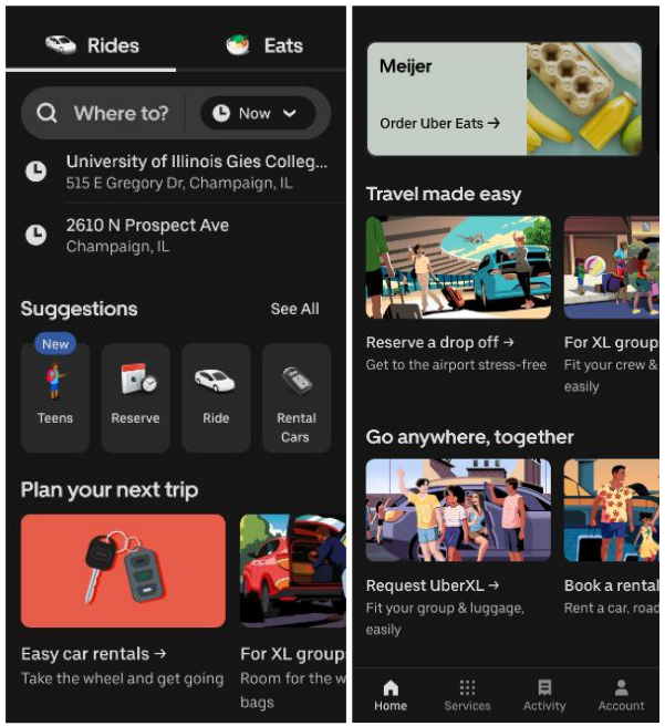 Crowded Options: With the addition of new features like Uber Pass, Uber for Business, and Uber Rentals, the app can feel slightly cluttered for users unfamiliar with the platform.
